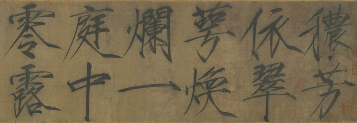 释文秾芳依翠萼,焕烂一庭中。零露沾如醉,残霞照似融。丹青难下笔,造化独留功。舞蝶迷香径,翩翩逐晚风。宣和殿制。 作品介绍 标题:秾芳诗帖 创作者:赵佶 创作年代:北宋 出处:台北故宫博物院 材质:绢本 尺寸:纵27.2厘米,横265.9厘米 图片大小 & 分辨率:16.9MB(23451×2020) 下载链接 Dropbox